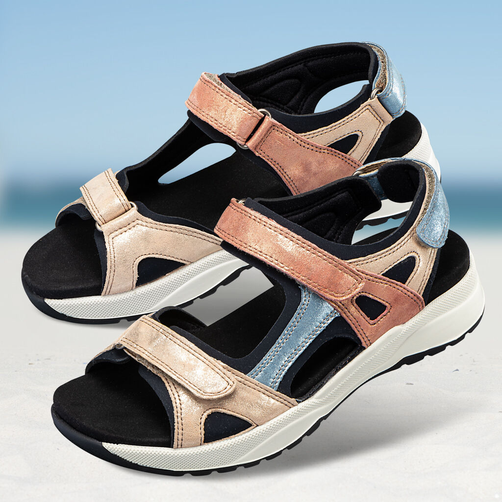 Mladostni sandali za uživanje! Iz prijetno mehkega usnja z nežnim neoprenom kot podlogo in obrobo, popolnoma prilagodljiv model s tremi ježki. Udobna hoja na mehkem Soft-Move podplatu z zamenljivim vložkom iz plute.