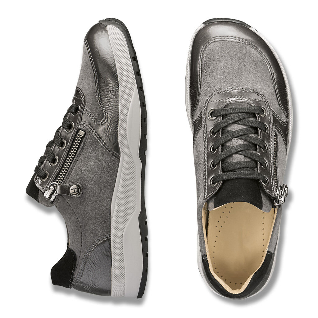 Prilagodljiv čevelj zahvaljujoč mehkemu kozjemu usnju s praktično zadrgo in vezalkami. Podložen z usnjem, oblazinjen ob robu in ob jeziku. Mehko oblazinjen Soft Move podplat, zamenljiv vložek lahko zamenjate za lastne vložke.