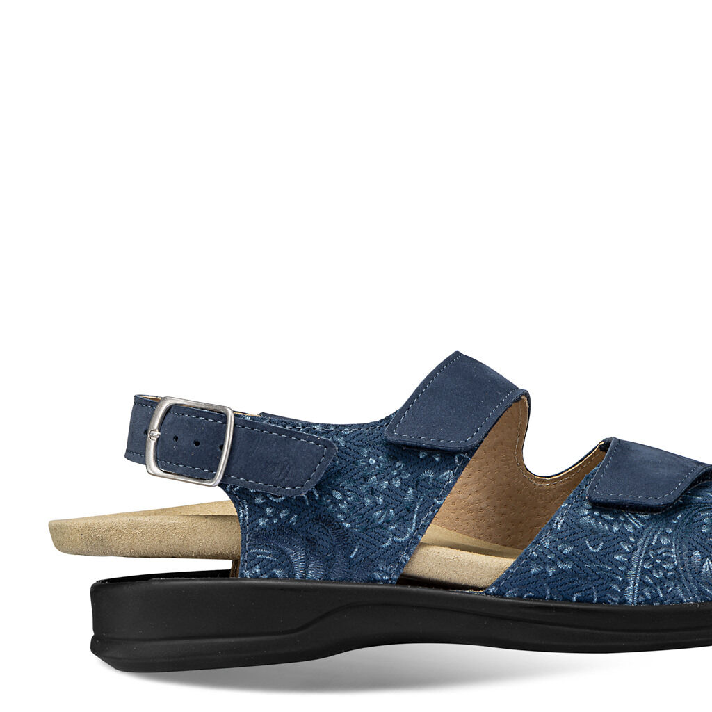 Usnjen sandal z dvema ježkoma na nartu in lepo zaponko na petnem traku. Fleksibilno izdelan s podlogo iz koži prijaznega usnja ter zamenljivim vložkom iz plute, prevlečenim s prevleko ALCANTARA, ki je preprosta za vzdrževanje. Širok in optimalno blažilen podplat zagotavlja izjemno udobje.